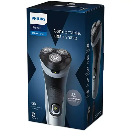 ریش‌تراش فیلیپس سری 3000X مدل X3063/00، با طراحی پیشرفته و 27 تیغه خودتیزشونده ComfortCut، تجربه اصلاح تمیز و راحتی با قیمت مناسب ارائه می‌دهد. دارای فناوری SkinProtect برای اصلاح نرم و ایمن، و ماندگاری تیغه‌ها تا دو سال. امکان استفاده در حالت مرطوب و خشک با صاف‌کننده پاپ‌آپ و سرهای شناور چهاربعدی که تماس یکنواخت با پوست را حفظ می‌کنند. با باتری بادوام NiMH، قابلیت 45 دقیقه اصلاح بی‌سیم و نشانگر باتری برای اطلاع از وضعیت باتری. طراحی زیست‌محیطی با بسته‌بندی بدون پلاستیک و استفاده از مواد بازیافتی.