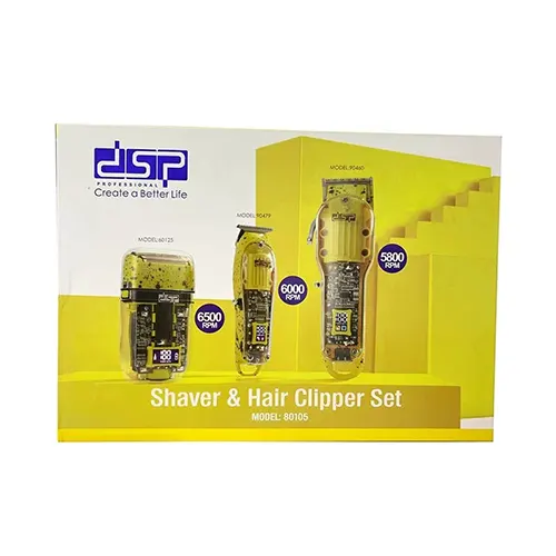 ست ماشین اصلاح دی اس پی 80105 DSP یکی از محصولات برجسته و پرطرفدار کمپانی DSP است که برای کاربران حرفه‌ای و همچنین استفاده شخصی طراحی شده است. این ست شامل سه دستگاه با کیفیت بالا است که هر کدام برای کاربردهای خاصی طراحی شده‌اند: