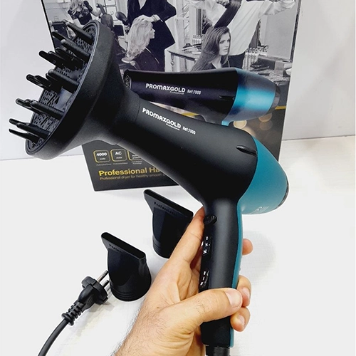 سشوار موتور سنگین پرومکس گلد REF-7004 با قدرت 4000 وات، موتور سنگین AC، تنظیمات متنوع دما و باد سرد، گزینه‌ای ایده‌آل برای استفاده حرفه‌ای و خانگی است.