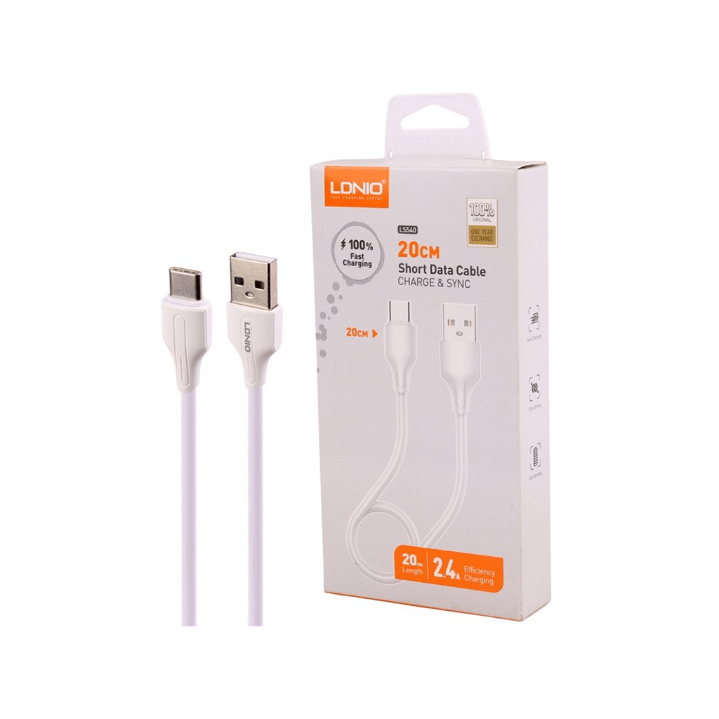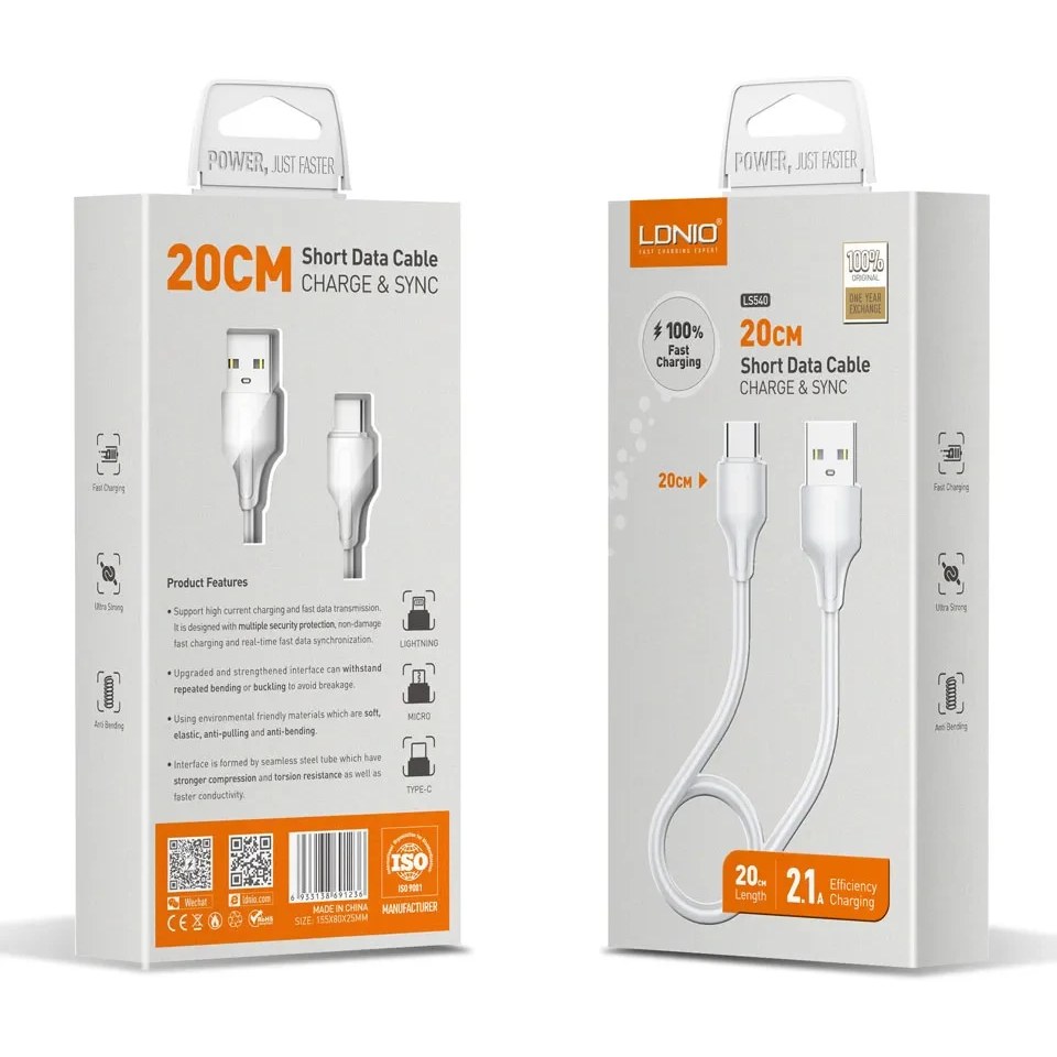کابل شارژ پاوربانکی TYPE-Cبرند LDNIO مدل LS540 ، کابلی به طول 20 سانتی متر است. در میانه ی کابل این مدل ، یک گیره ی جمع کننده کابل قرار دارد که به منظور حمل راحت تر و همچنین اشغال فضای کمتر کابل ، در نظر گرفته شده است.کابل الدینیو LS540 در سه نوع Lightning ، Type-C و MicroUSB به بازار عرضه شده است. خروجی کابل ، 2.4 آمپر است و از فناوری Fast Charge نیز پشتیبانی می کند. علاوه بر این ، از قابلیت انتقال دیتا بهره مند است و می تواند با سرعت بالا ، اطلاعات را منتقل سازد.
