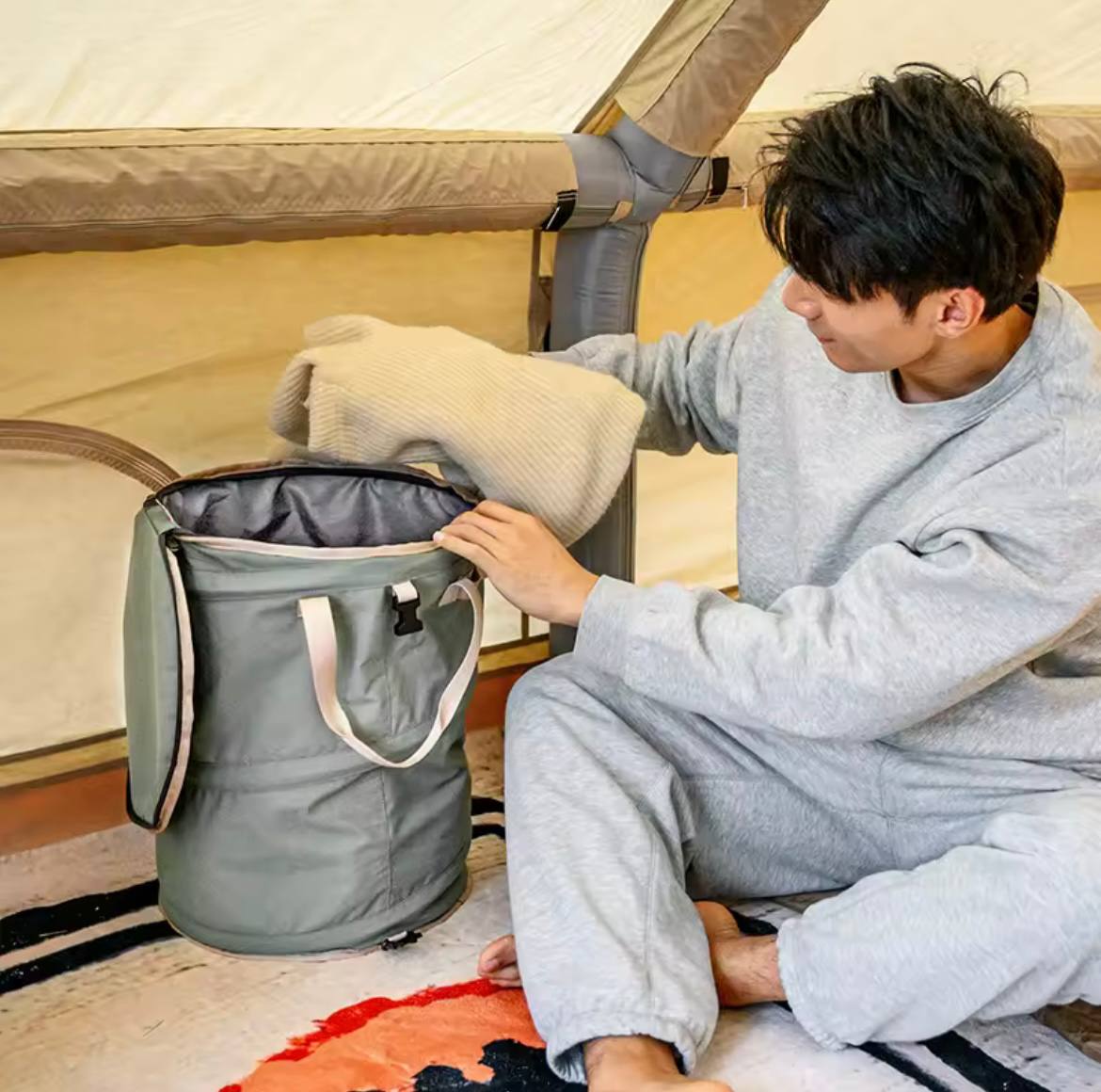 قابلیت استفاده با میلههای سایبان و چادر: این ویژگی امکان استفاده از کیف بهعنوان سطل آب یا نگهدارنده در کمپینگ را فراهم میکند.