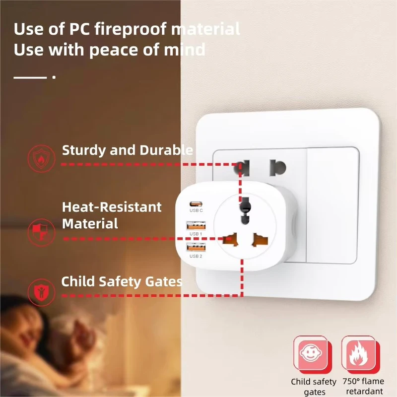 تبدیل ۲ شاخه به ۳ شاخه + ۲ عدد USB + ۱ عدد USB Type C