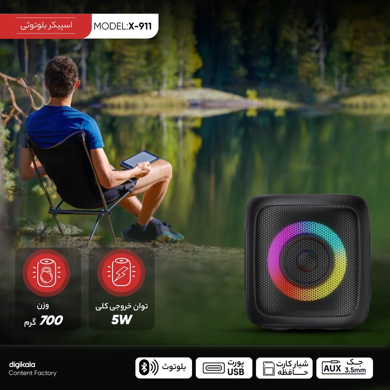 • صدای باکیفیت: با توان خروجی 5 وات، اسپیکر بلوتوثی X-911 صدایی واضح و رسا رو بهت ارائه میده. این اسپیکر برای گوش دادن به موسیقی توی خونه، محل کار، یا حتی پیک‌نیک یه انتخاب عالیه.