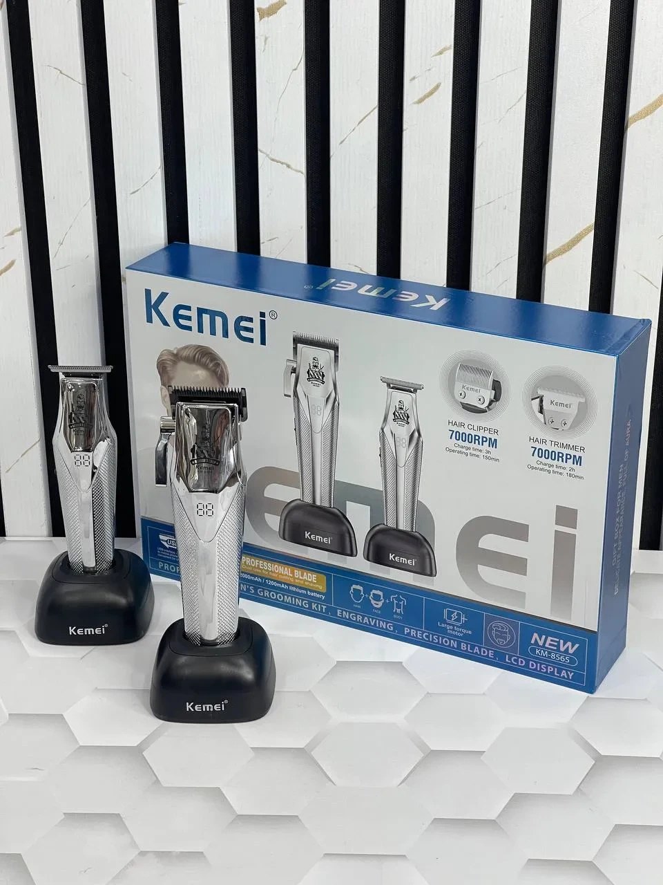 چه یک آرایشگر حرفهای باشید که روزانه با مشتریان متعددی سروکار دارد و چه فردی که به اصلاح شخصی در خانه اهمیت میدهد، ست 2 قلو فلزی ماشین اصلاح کیمی مدل Kemei KM-8565 انتخابی بینقص برای شما خواهد بود. موتورهای پرقدرت، تیغههای تیز و بادوام، شارژدهی عالی و طراحی ارگونومیک، همگی تضمین میکنند که تجربهای راحت، سریع و حرفهای از اصلاح داشته باشید.