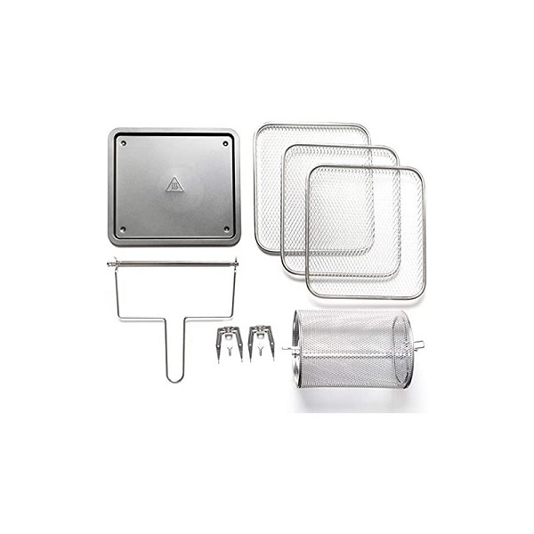 | سایر ویژگی ها | مجهز به 10 برنامه هوشمند مجهز به سیستم جوجه گران دارای سبد گردان و سه عدد سینی توری و سیخ جوجه گردن و سینی چکه گیر مجهز به چراغ داخلی برای دیدن غذا بدنه چند لایه برای جلوگیری از انتقال حرارت پایه ضد لغزش سیستم گریل سیستم ایمنی قابلیت یخ زدایی قابلیت گرم کردن مجدد قابلیت تنظیم حرارت خاموش کننده خودکار |