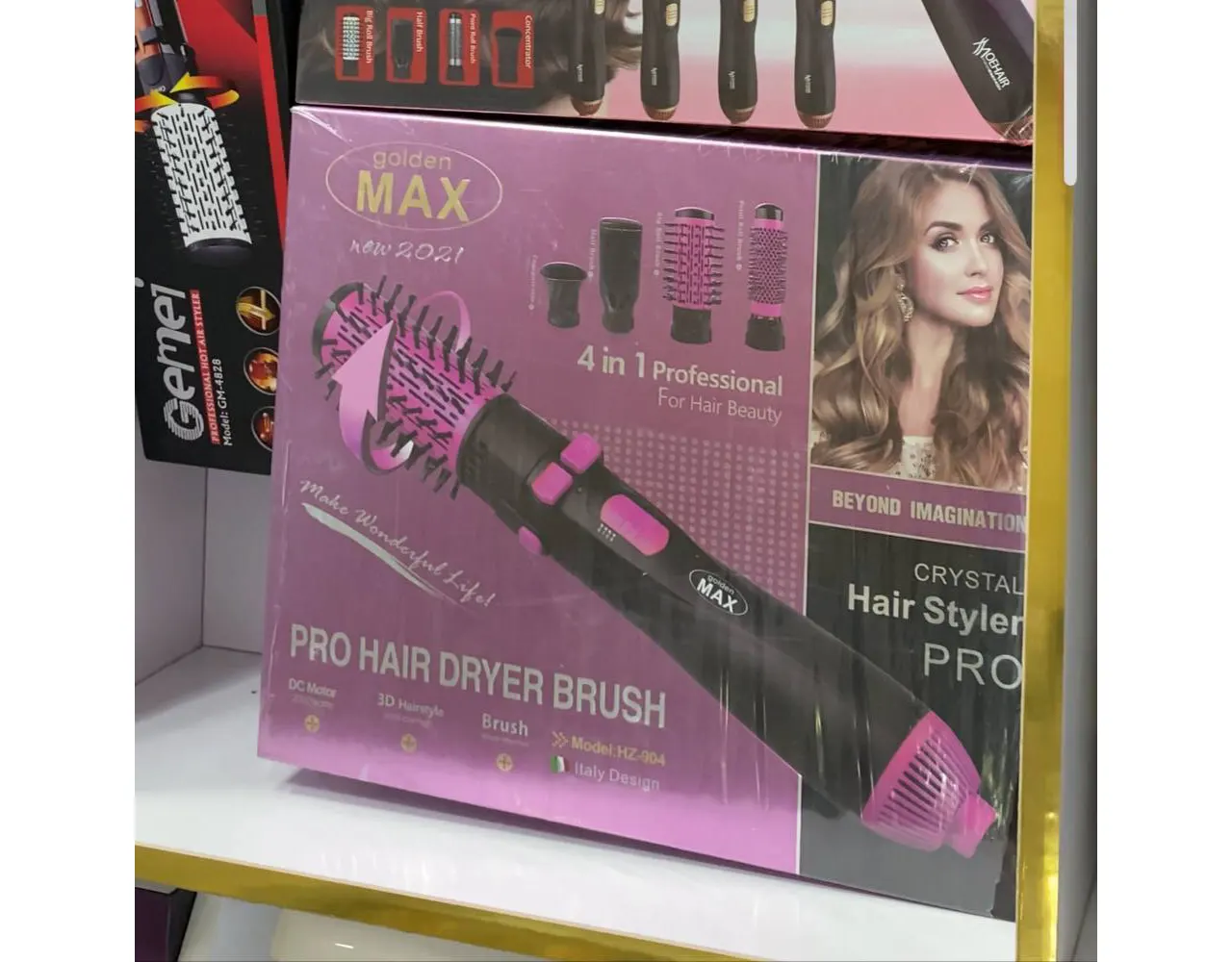 سشوار چرخشی گلدن مکس مدل HZ-904 از جمله مدلهای برجسته با کیفیت و کارکرد عالی است که توسط کمپانی مکس در ایتالیا تولید شده است. با دور موتور قوی به 2000 وات و دو موتور جداگانه برای گرما و چرخش سر سشوار، سشوار چرخشی مکس hz 904 برای مصارف حرفهای و آرایشگاهی بسیار مناسب است. المنتهای سرامیکی و برس سرخود جلوی آسیب به موها را میگیرند. سشوار چرخشی اصلی دارای قابلیت چرخش 360 درجه، دکمههای جداگانه برای تغییر جهت، و فناوری تولید یون نیز میباشد. علاوه بر این، در دو رنگ مشکی و صورتی در بازار موجود است.