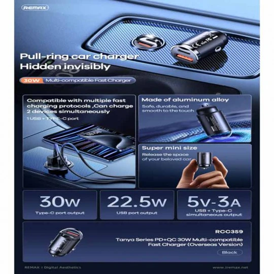 شارژر فندکی فست شارژ ریمکس مدل RCC359