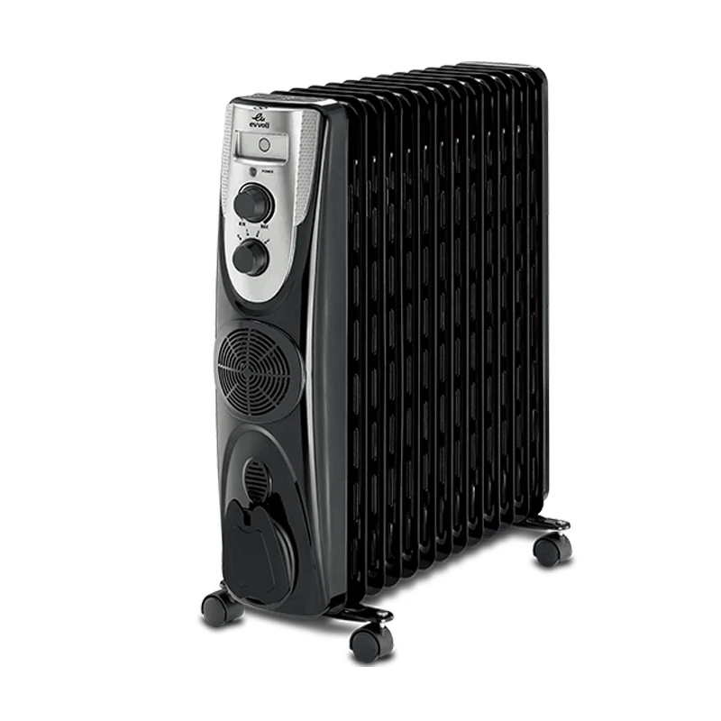 شوفاژ برقی فن دار ایوولی مدل EVOH-13FW از محصولات با کیفیت ایوولی ایتالیا و ساخت چین میباشد. این محصول دارای گرماده های PTC بوده که باعث افزایش طول عمر دستگاه شده و دارای انتقال گرما از طریق روغن بوده که از بهترین و جدیدترین مدل های بازار میباشد. این محصول دارای دو درجه مکانیکی بوده که یکی تنظیم درجه المنت و یکی میزان دما میباشد. 13 پره این محصول با تکنولوژی روز گرمادهی دنیا به راحتی محیط حدودی 25 متر را گرم میکند. فن این محصول نیز قابلیت گرمادهی جداگانه را داشته که میتوان برا فضای کوچک استفاده نموده و در مصرف انرژی صرفه کرد. از دیگر قابلیت های این محصول میتوان به حالت ویژگی ضد یخ زدگی ، ویژگی جلوگیری از گرمایش بیش از حد و سوییچ ایمنی قطع جریان اشاره نمود.