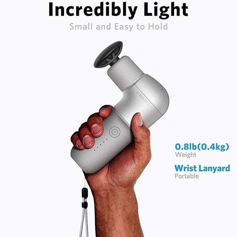 سبک و قابل حمل – تفنگ ماساژ کوچک NAIPO تنها 0.4 کیلوگرم (0.88 پوند) وزن دارد، شبیه به یک تلفن همراه. با اتصال بند مچ دست، می توانید آن را در جیب یا کیف دستی خود حمل کنید، از آن در خانه، اداره، خارج از منزل یا حتی در جاده استفاده کنید. عضلات سفت و درد را در هر زمان و هر مکان تسکین دهید.