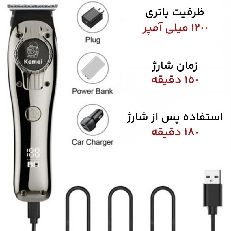 نوع: قیچی مو منبع تغذیه: باتری محل استفاده: مو/ریش/بدن رنگ: نقره ای صدای کم جنس تیغه : استیل ضد زنگ نوع : خط زن صفر زن منبع انرژی : باتری ۱۲۰۰ میلی آمپر مدت زمان شارژ : ۱۵۰ دقیقه مدت زمان استفاده : ۱۸۰ دقیقه قابلیتها : دارای قفل ایمینی و تیغه R شکل برای خط زنی حرفه ای