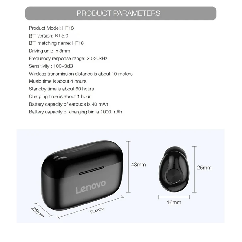 با به بازار آمدن هندزری بلوتوث های دو گوش به سرعت طرفداران آن ها در حال افزایش می باشد زیرا به یکی از کاربردی ترین محصولات روزمره تبدیل شده اند. کمپانی Lenovo که سابقه درخشانی در زمینه لوازم برقی دارد این بار درست به تولید هندزفری دو گوش HT18 زده که از کیفیت بالایی برخوردار می باشد. هندزفری دو گوش بی سیم Lenovo HT18 New دارای دو گوشی است که به صورت تو گوشی طراحی شده و سری های سیلیکونی قرار گرفته بر روی آن ها باعث شده تا به خوبی بر روی گوش شما قرار بگیرد. دو ایربادز دارای یک داک شارژ نیز می باشد که با قرار دادن آن ها داخل داک؛ می توانید هندزفری را شارژ نمایید. این محصول دارای وزن بسیار کمی می باشد و این امر باعث شده تا در استفاده های طولانی مدت هرگز گوش شما خسته نشود. هرکدام از هندزفری ها دارای یک کلید فیزیکی است که می توان با آن تماس ها و موسیقی در حال پخش را کنترل کرد. با نگهداشتن هر کدام از این کلید ها می توانید هندزفری مورد نظر را روشن بکنید. این محصول دارای میکروفون HD بوده که باعث شده تا بتوانید مکالمه ای شفاف را تجربه بکنید البته باید توجه کنید که نباید انتظار میکروفونی باکیفیت هندزفری های گردنی را داشته باشید زیرا میکروفون از دهان دورتر است و باید برای مکالمه بهتر کمی بلندتر صحبت کنید. داک هندزفری Lenovo HT18 دارای باتری با ظرفیت 300 میلی آمپری می باشد که می تواند هندزفری را تا 24 ساعت در خدمت شما قرار دهد. هرکدام از هندزفری ها دارای 4 ساعت دوام باتری هستند و همراه با داک می توانید 5 بار دیگر نیز هندزفری ها را شارژ کرد. البته باید توجه داشته باشید زمان های اعلام شده در حالت 50 درصد صدا بوده و ممکن است در شرایط و گوشی های مختلف، کمی متفاوت باشد. بلوتوث این هندزفری نسخه 5 بوده و یکی از دلایل مصرف کم باتری نیز همین می باشد. کانکت شدن هندزفری ها به یکدیگر بسیار ساده است و به راحتی با جدا کردن آن ها از داخل داک شارژ، هردو به یکدیگر Pair می شوند. داخل پک این محصول سری های سیلیکونی قرار دارد که باعث شده تا در موارد نیاز بتوانید آن ها را تعویض بکنید تا به راحتی هندزفری داخل گوش شما قرار بگیرد و علاوه بر این یک کابل تایپ سی هم جهت شارژ هندزفری داخل پک هست. شما می توانید از این محصولات به صورت تکی هم استفاده بکنید و در زمانی که شارژ یکی به اتمام رسید