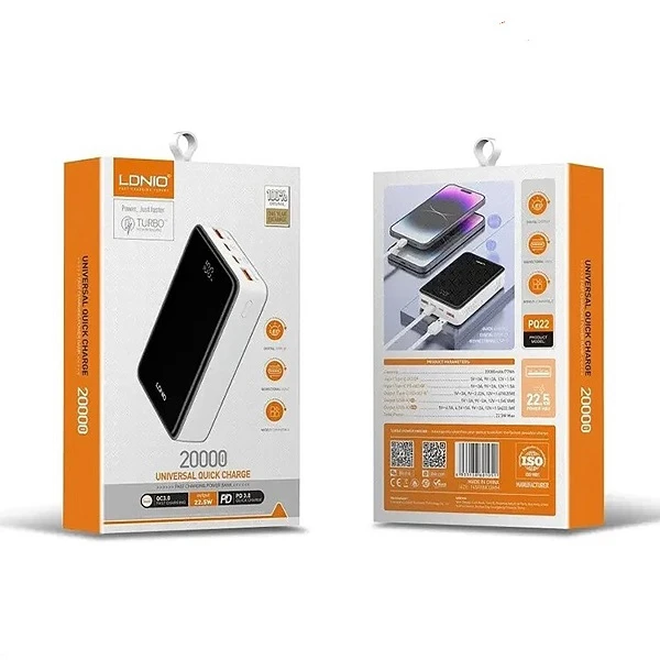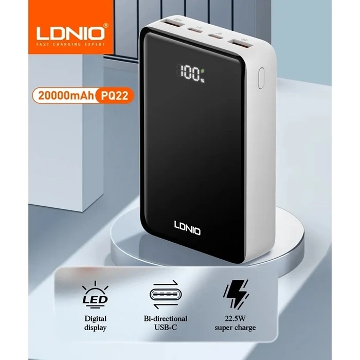 پاوربانک LDNIO مدل PQ22 ظرفیت 20000 میلی آمپر ویژگی SUPER FAST CHARGE 22.5 وات پاوربانک ها به عنوان یکی از ابزارهای ضروری در زندگی روزمره ما، نقش بسیار مهمی را ایفا می کنند. از آنجایی که امروزه اکثر افراد از دستگاه های الکترونیکی همچون گوشی های هوشمند، تبلت ها، لپ تاپ ها و دیگر دستگاه های قابل حمل برای انجام امور روزانه شان استفاده می کنند، پاوربانک ها به عنوان منبعی قابل حمل برقی اهمیت بیشتری پیدا کرده اند. در این میان، پاوربانک LDNIO PQ22 با ظرفیت 20000 میلی آمپر، یکی از محصولات برجسته و پرطرفدار است که امکانات و ویژگی های بسیاری را در اختیار کاربران خود قرار می دهد. در ادامه، به بررسی این پاوربانک و ویژگی های آن می پردازیم تا به شما کمک کنیم تا انتخاب بهتری برای نیازهای شارژ خود داشته باشید.