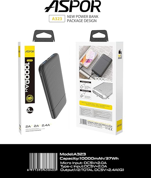 پاوربانک Aspor A323، 10000 میلی آمپر ساعت. دو کانکتور USB که می توانند تا 2 آمپر را ارائه دهند، که زمان دستگاه شما را بسیار افزایش می دهد. شما می توانید تبلت را در حالی که در جاده هستید آزادانه شارژ کنید. باتری قابل حمل دارای نشانگر LED است که به شما امکان می دهد هم فرآیند شارژ پاوربانک و هم میزان مصرف شارژ را کنترل کنید. قاب باتری از پلاستیک مقاوم در برابر ضربه با پوشش Softouch ساخته شده است