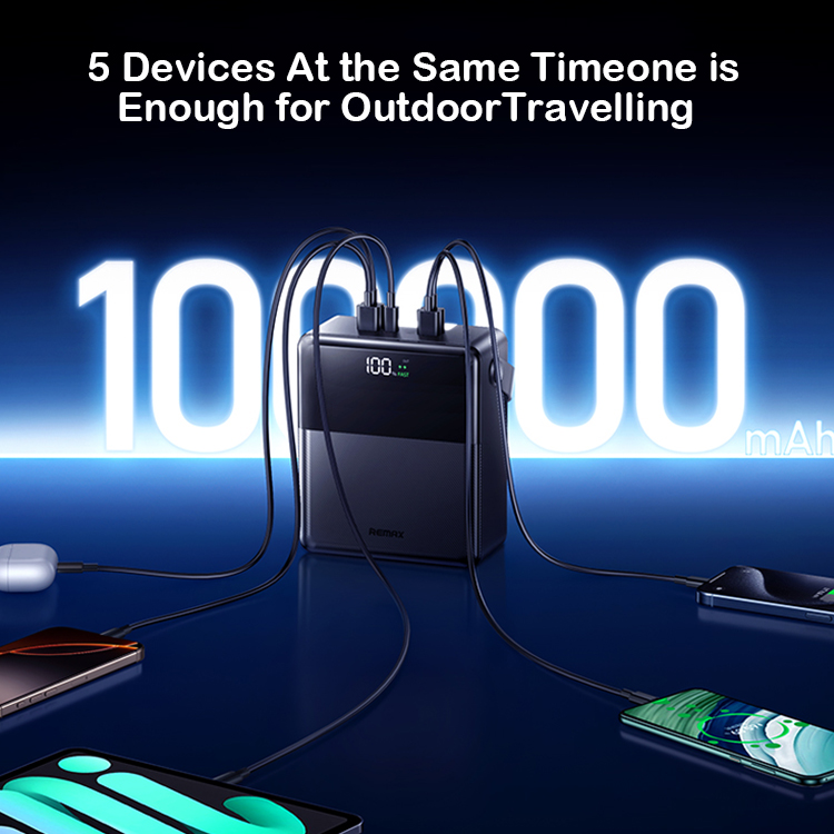 پاوربانک میلیآمپرساعتی Remax FP-1 از حداکثر 5 پورت خروجی شامل پورت Type-C و 4 پورت USB که از شارژ همزمان 5 دستگاه مانند تلفن، تبلت، هدفون و …. را پشتیبانی میکند 3 پورت ورودی متنوع Type-C، Micro، Lightning به کاربران کمک میکند تا به طور انعطافپذیر از هر رابط کابل شارژ برای تأمین برق باتری استفاده کنند.