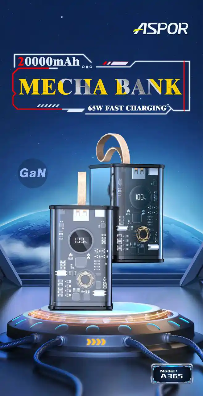 • پاوربانک 20000 Aspor A365 یکی از محصولات پرظرفیت و باکیفیت برند آسپور است که برای شارژ دستگاه‌های مختلف از جمله گوشی‌های هوشمند، تبلت‌ها و سایر گجت‌ها طراحی شده است. این پاوربانک با قابلیت‌ها و ویژگی‌های خود گزینه‌ای مناسب برای استفاده روزمره و سفرهای طولانی محسوب می‌شود.