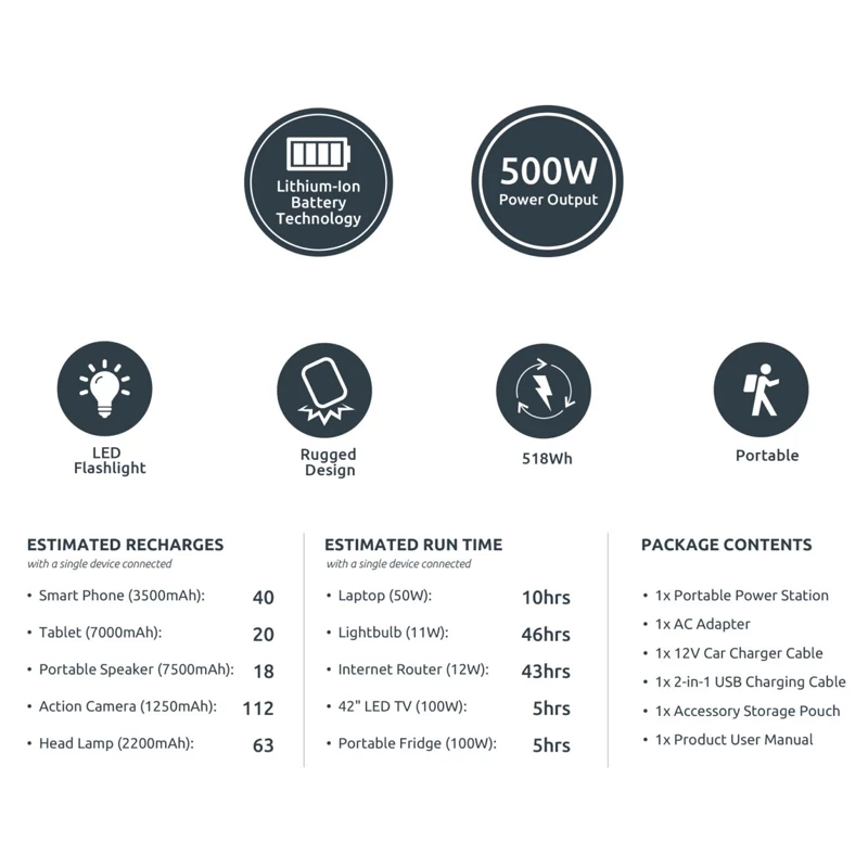 نیروگاه قابل حمل Gizzu GPS500 با ظرفیت 518 وات ساعت