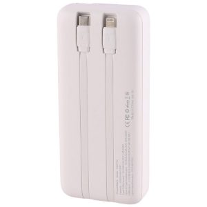 دارای باتری لیتیوم پلیمری با ظرفیت 20000 میلی آمپر ساعت، شارژ مجدد پاوربانک توسط درگاه تایپ سی (مشترک) و کابل همراه