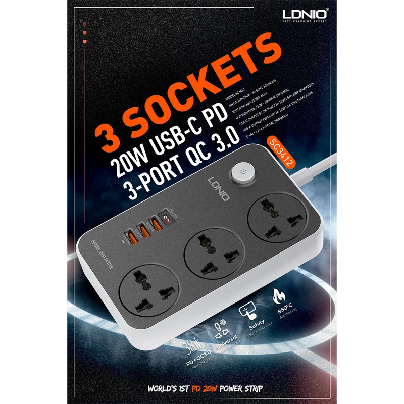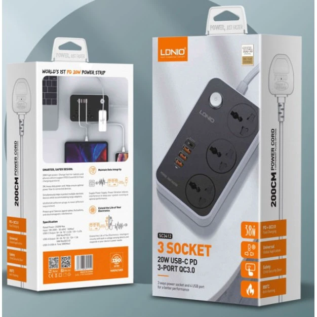 تعداد پریزها و پورت‌ها: چندراهی SC-3412 دارای 4 پریز برق و 3 پورت USB است. این ویژگی امکان استفاده همزمان از چندین دستگاه الکترونیکی را فراهم می‌کند و از نیاز به چندین پریز جداگانه جلوگیری می‌کند.