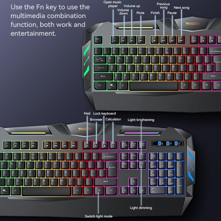 کیبور Kb21 مخصوص بازی از برند یسیدو مناسب برای گیمرهایی که بدنبال تلفیقی از زیبایی و راحتی هستند مناسب برای استفاده های طولانی مدت دارای افکت های زیبا که فضای کار را برای شما بسیار زیبا میکند